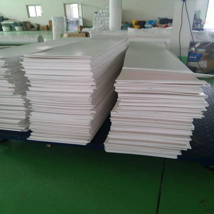 聚四氟乙烯板材,由100%的纯聚四氟乙烯经模压、车削、裁切等各种工艺精制而成,在已知的塑料中它具有极好的耐化学腐蚀性能,不老化,电绝缘,并具有极低的磨擦系数, 在无负荷的情况下,能在-180~+260度的温度下使用。适用于平垫、V型垫、衬材等密封材料,活塞环、导轨等润滑材料,电绝缘材料,防粘材料等。